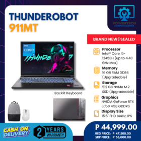 Thunderobot | ₱44,999.00 | Intel i5 | 16 GB DDR4 | 512 GB SSD | NVIDIA GeForce RTX 3050 4GB GDDR6 | 15.6" Full HD | ||