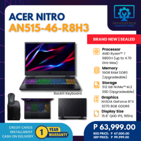 Acer | ₱63,999.00 | AMD Ryzen 7 | 16 GB DDR5 | 512 GB SSD | NVIDIA GeForce RTX 3070 Laptop GPU 8GB GDDR6 | 15.6" Full HD |