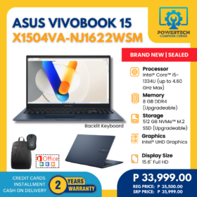 Asus | ₱30,999.00 | AMD Ryzen 3 | 8 GB DDR5 | 512 GB SSD | AMD Radeon Graphics | 15.6" Full HD | ||