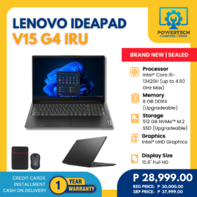 Lenovo | ₱28,999.00 | Intel i5 | 8 GB DDR4 | 512 GB SSD | Intel® HD Graphics | 15.6" Full HD | ||