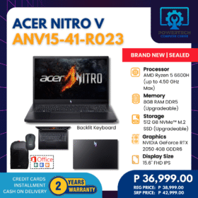 Acer | ₱37,999.00 | AMD Ryzen 5 | 8 GB DDR5 | 256 GB SSD | NVIDIA GeForce RTX 2050 Laptop GPU 4GB GDDR6 | 15.6" Full HD | ||