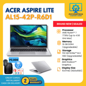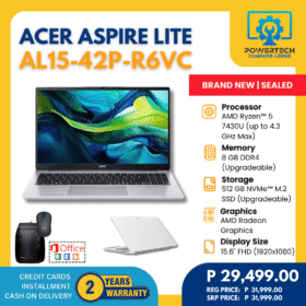Acer | ₱29,499.00 | AMD Ryzen 5 | 8 GB DDR4 | 512 GB SSD | AMD Radeon Graphics | 15.6" Full HD | ||