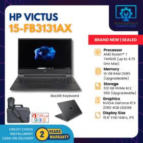 HP | ₱56,999.00 | Intel i5 | 16 GB DDR4 | 512 GB SSD | NVIDIA GeForce RTX 2050 Laptop GPU 4GB GDDR6 | 15.6" Full HD | ||